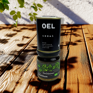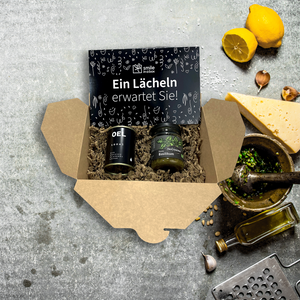 Zwei fein abgestimmte Bio-Spezialitäten für bewussten Genuss: hochwertiges Bio-Olivenöl und aromatisches Bio-Pesto vereinen sich zu einem stilvollen Feinkost-Duo. Sorgfältig ausgewählt, natürlich hergestellt und vielseitig einsetzbar – ideal als geschmackvolles B2B-Geschenk mit nachhaltigem Anspruch.