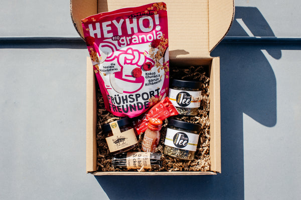Zwei feine Teesorten "Kaktus-Feige" und "Wohlfühltee" werden von einem gesunden Energieshot "Granatapfel-Ingwer", sowie einem leckeren Bio-Granola von HeyHo begleitet. Etwas Honig oder Zucker für die Süße darf nicht fehlen. Der Bio-Honig von Imker Schindler steht für naturnahe Imkerei. Und der Tzampas Goji-Riegel liefert Energie mit ökologischen Zutaten. Mit Ihrem Kauf fördern Sie unmittelbar Inklusionsarbeit – ein Engagement, das Ihre Beschenkten sicher zu schätzen wissen!