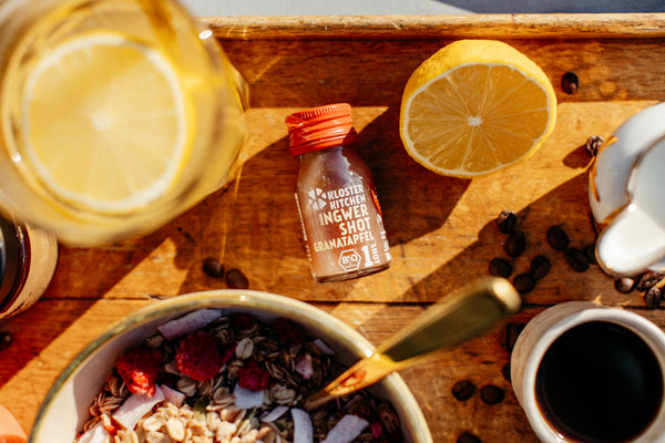 Kloster Kitchen ist ein innovativer Hersteller aus Bayern, der sich auf natürliche Ingwer-Shots mit echten Ingwerstückchen spezialisiert hat. Die Rezeptur basiert auf einer jahrhundertealten Klostertradition und wird modern interpretiert. Dabei setzt das Unternehmen auf hochwertige Bio-Zutaten und volle Geschmackspower. Die Produkte sind vegan, ohne künstliche Zusätze und stehen für einen gesunden Lebensstil. Kloster Kitchen verbindet altbewährtes Wissen mit zeitgemäßem Genuss und hat 2016 mit dem Classic Ingwer Shot den ersten Ingwer Shot in der DACH-Region auf den Markt gebracht und somit die Kategorie der Ingwer Shots gegründet.